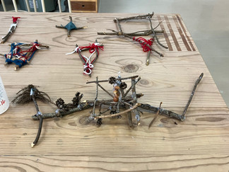 木材、木の実、毛糸、オーナメントの台紙 こんなのを合わせてどんなものが作れるかな?